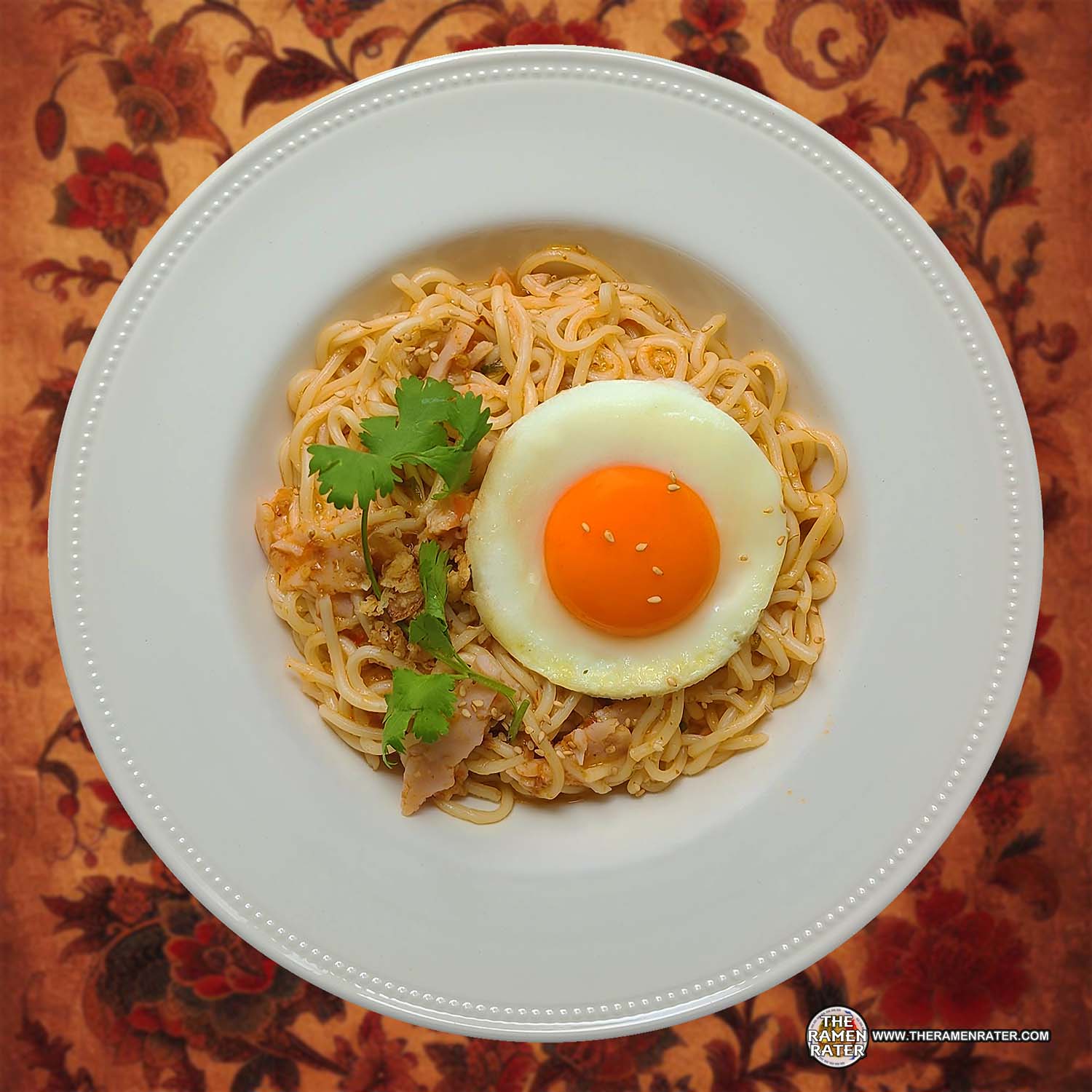 Finished (click to enlarge). Added fried egg, imitation crabmeat, sesame seed, and coriander. Noodle was stalwart and true – chewy and with thick gauge; an old friend from the Prima Taste range I’ve known and enjoyed for years. The flavor was sweet, spicy (balanced) and very crabby. Loved it. 5.0 out of 5.0 stars. EAN bar code 8886350068257.