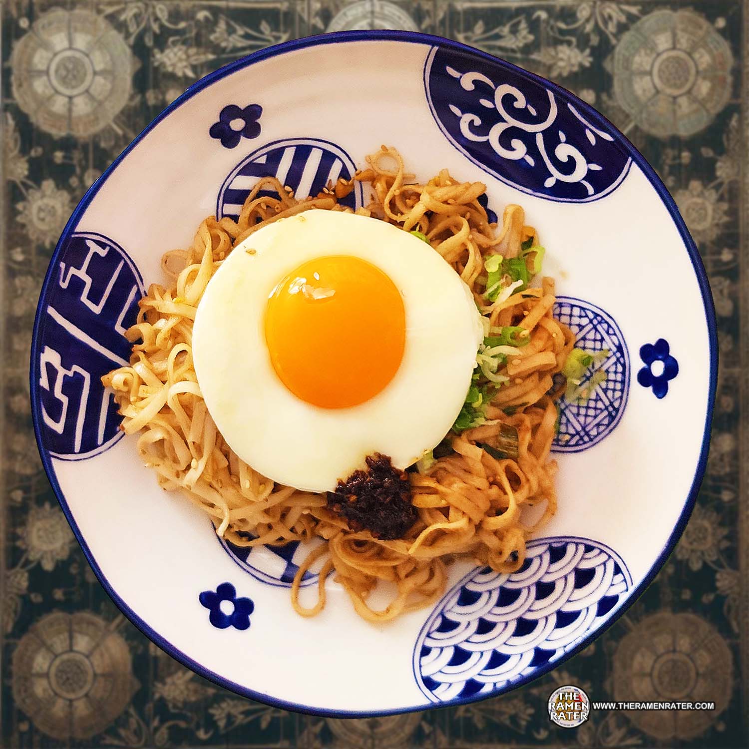 Finished (click to enlarge). Added fried egg, scallion, LKK Chiu Chow chili crisp in oil, and sesame seed. A very dry dry noodle with a thin gauge and very nice light chew. The flavor was very good – like a sesame paste along with crunchy peanut – and it works incredibly well. 5.0 out of 5.0 stars. EAN bar code 4582730270718.