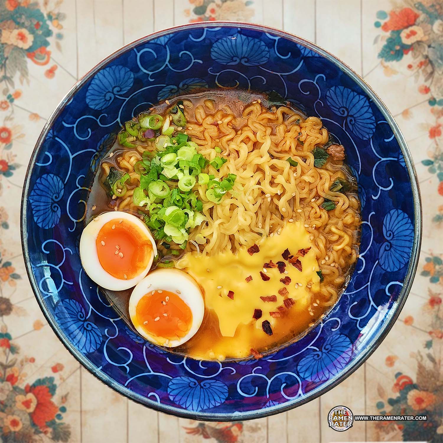 Finished (click to enlarge). Added egg, sesame seed, scallion, crushed red pepper, and processed cheese. Noodle came out of the microwave perfectly. The broth has a very mushroom aroma but did have that kind of savory beef broth aspect. It was certainly mild, but incredibly savory. Possibly my favorite ramyun now. 5.0 out of 5.0 stars. UPC bar code 850033465839.