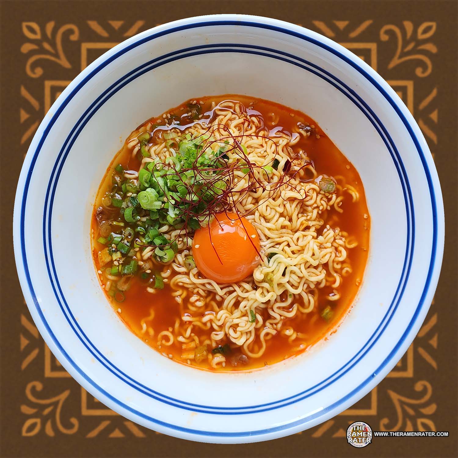 Finished (click to enlarge). Added egg, chile thread, sesame seed, and scallion. Noodle hydrated well, however much better when microwaved rather than steeped. Broth has a nice heat to it and savory flavor. 4.0 out of 5.0 stars. UPC bar code 850033465846.