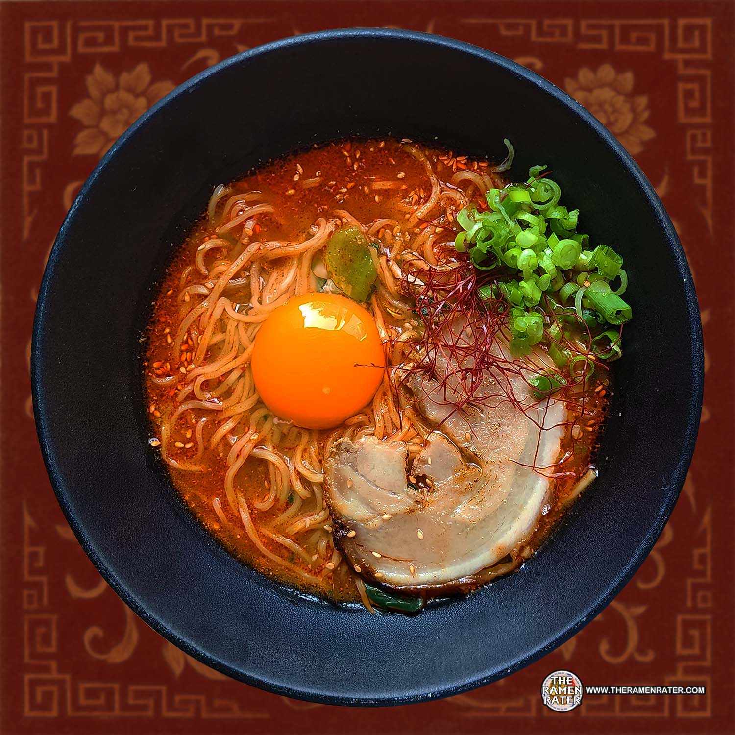 Finished (click to enlarge). Added egg, pepper thread, scallion, chashu, and sesame seed. Noodle is thick and chewy. Wonderful! Broth is thick too – oily and sludgy and perfect, with little meaty bits as well. Really a wonderful bowl of noodles. 5.0 out of 5.0 stars. JAN bar code 4903088017129.