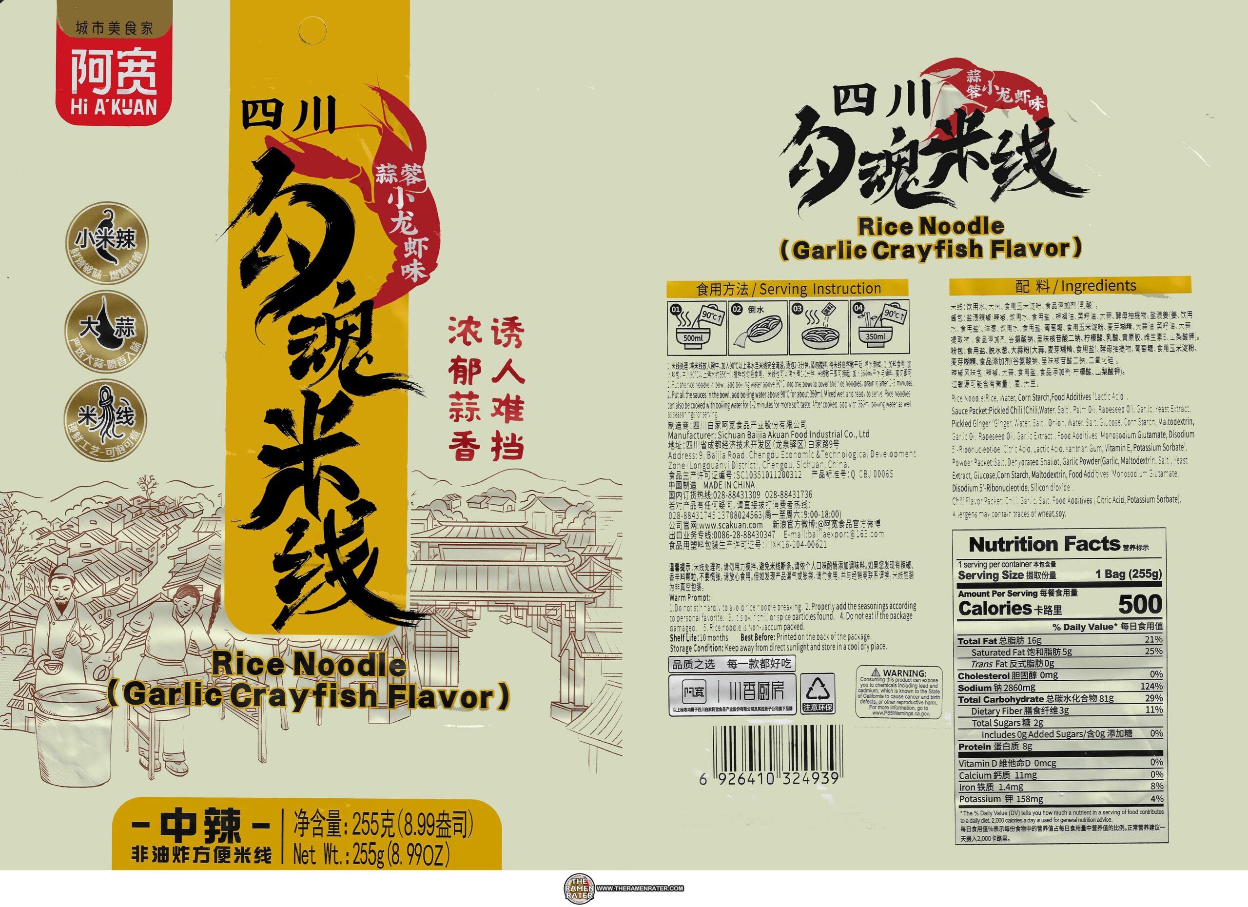 Hi A’Kuan Rice Noodle Garlic Crayfish Flavor – China