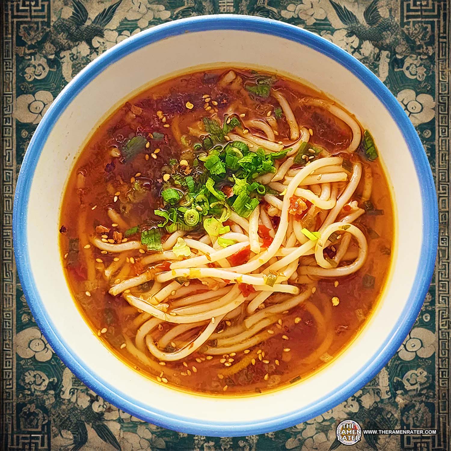 Finished (click to enlarge). Added sesame seed, scallion, and crushed red pepper. Rice noodle was pretty good – nice gauge and chew. Broth has a little sting to it and a nice oiliness and flavor. The problem here was a thing I’ve come across a lot lately. The noodle and broth seem to be at odds with eachother and don’t marry well. Whilre I like them both, I think a different noodle for this broth would have been a nicety. 3.25 out of 5.0 stars. EAN bar code 6926410324939.