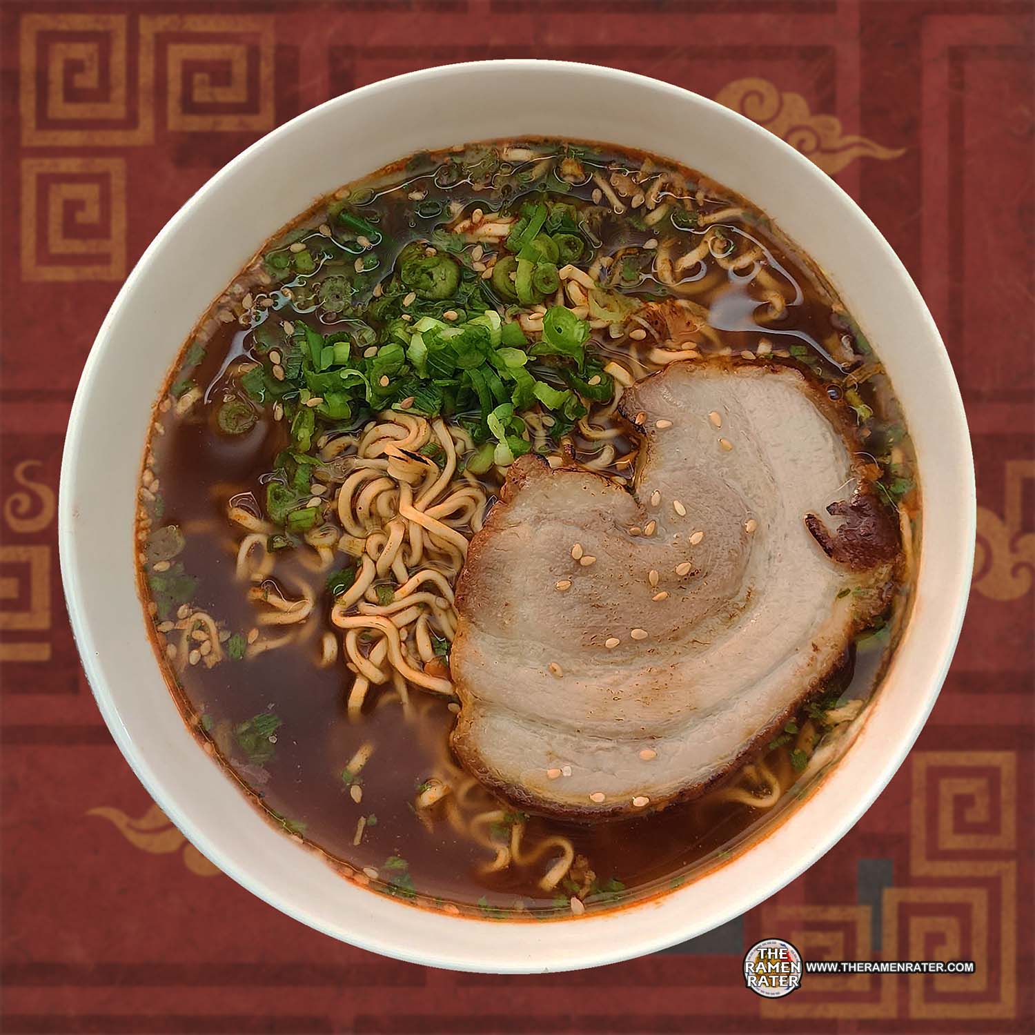 Finished (click to enlarge). Added chashu, scallion, and sesame seed. I really like these noodles – steeped or microwaved. As far as the broth’s flavor, I didn’t really get a strong flavor other than spicy from this one that was kind of surprising. I guess chock it up to that I’ve tried so many A-Sha products I’ve really liked – has to be one eventually I dislike. 1.0 out of 5.0 stars. UPC bar code 193937001483.