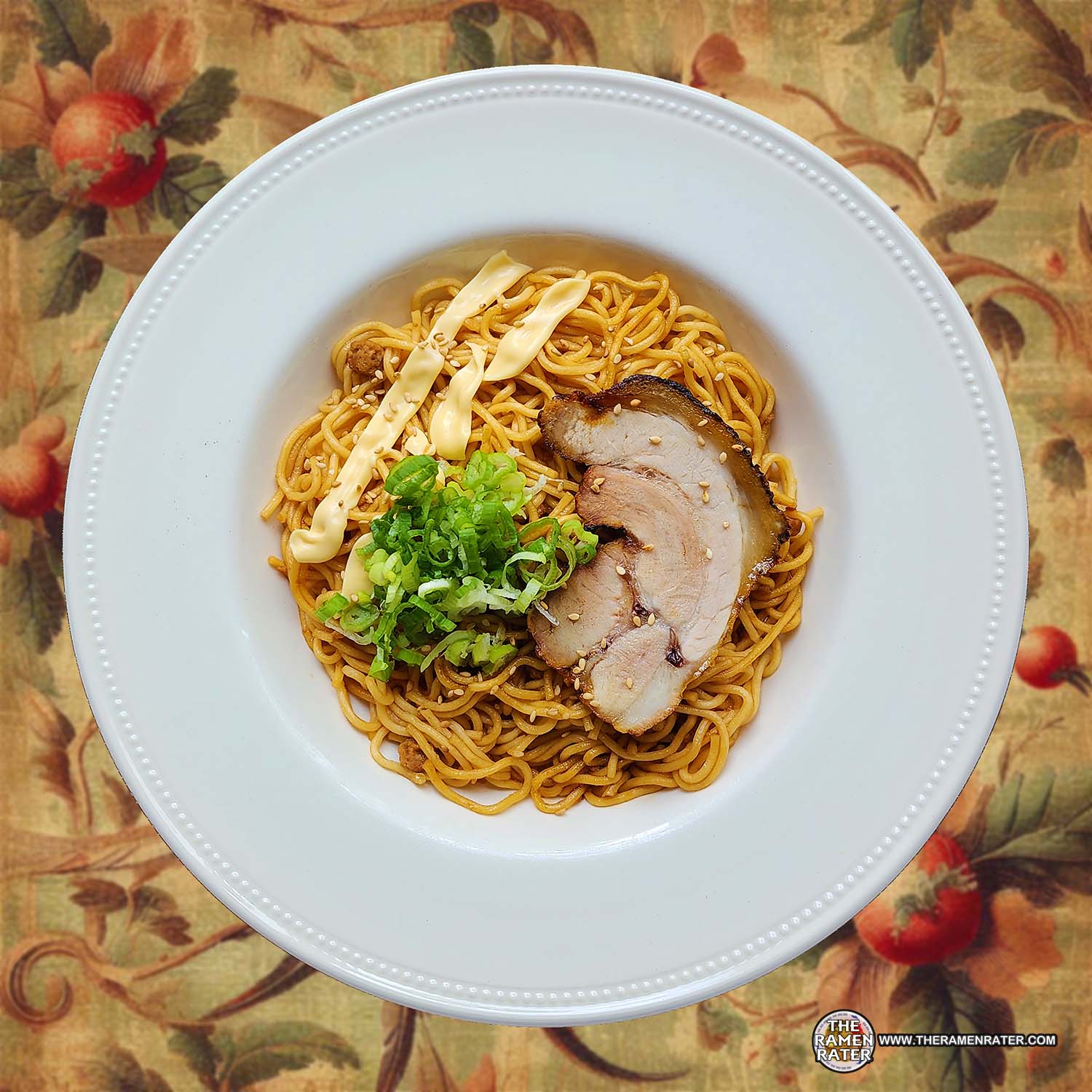 Finished (click to enlarge). Added Chashu, scallion, and sesame seed. Noodle was pretty standard for yakisoba. That’s about as good as I can say as the flavor is really offputting. The cheese mingles with a beef funk and a tangy acidity to the mayo and cheese sauce combo. It’s really something I did not like whatsoever. 0.0 out of 5.0 stars. . JAN bar code 4902105284681.