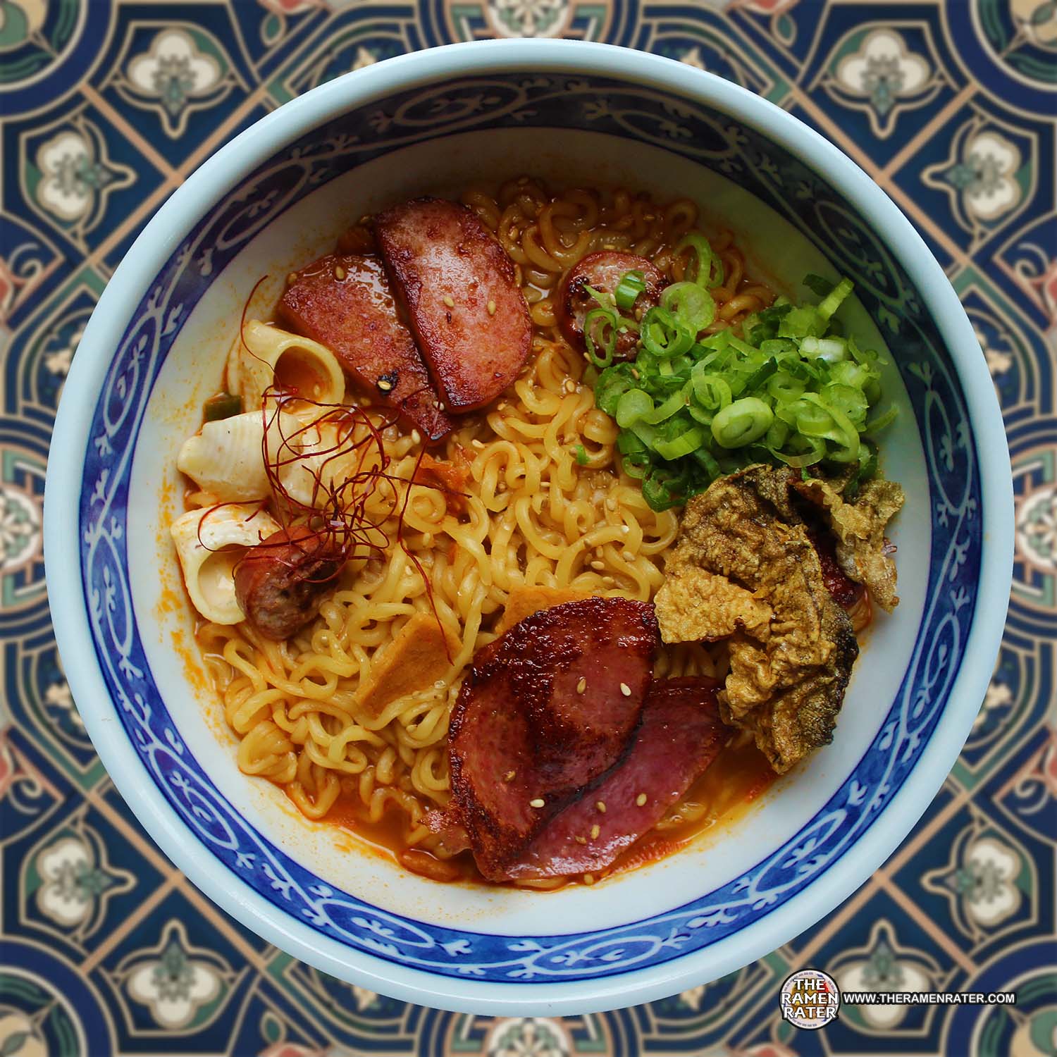 Finished (click to enlarge). Added Korean friied pollock skin, SPAM, salami, hot dog, shells and cheese, pepper thread, scallion, and sesame seed. Noodle is great – perfect. The broth is like their old K-Army Stew – a huge favorite of mine. Lots of fish cake and other bits – just wonderful! 5.0 out of 5.0 stars. As for the fish skin, it’s light, crisp, and has a nice balance of salty and sweet. Really loved it – 5.0 out of 5.0 stars as a garnish and a snack! UPC bar code 031146042098.