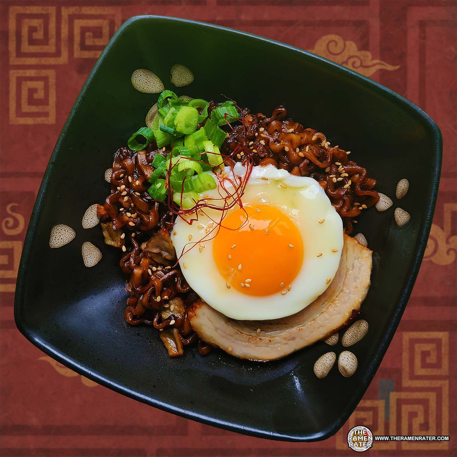 Finished (click to enlarge). Added egg, chashu, sesame seed, scallion, and chili thread. Noodle is thick and chewy, flavor of the sauce is rich and smoky. It’s some serious stick to your ribs stuff – very hearty. A really great jjajang. 4.5 out of 5.0 stars. EAN bar code 8801045830896.