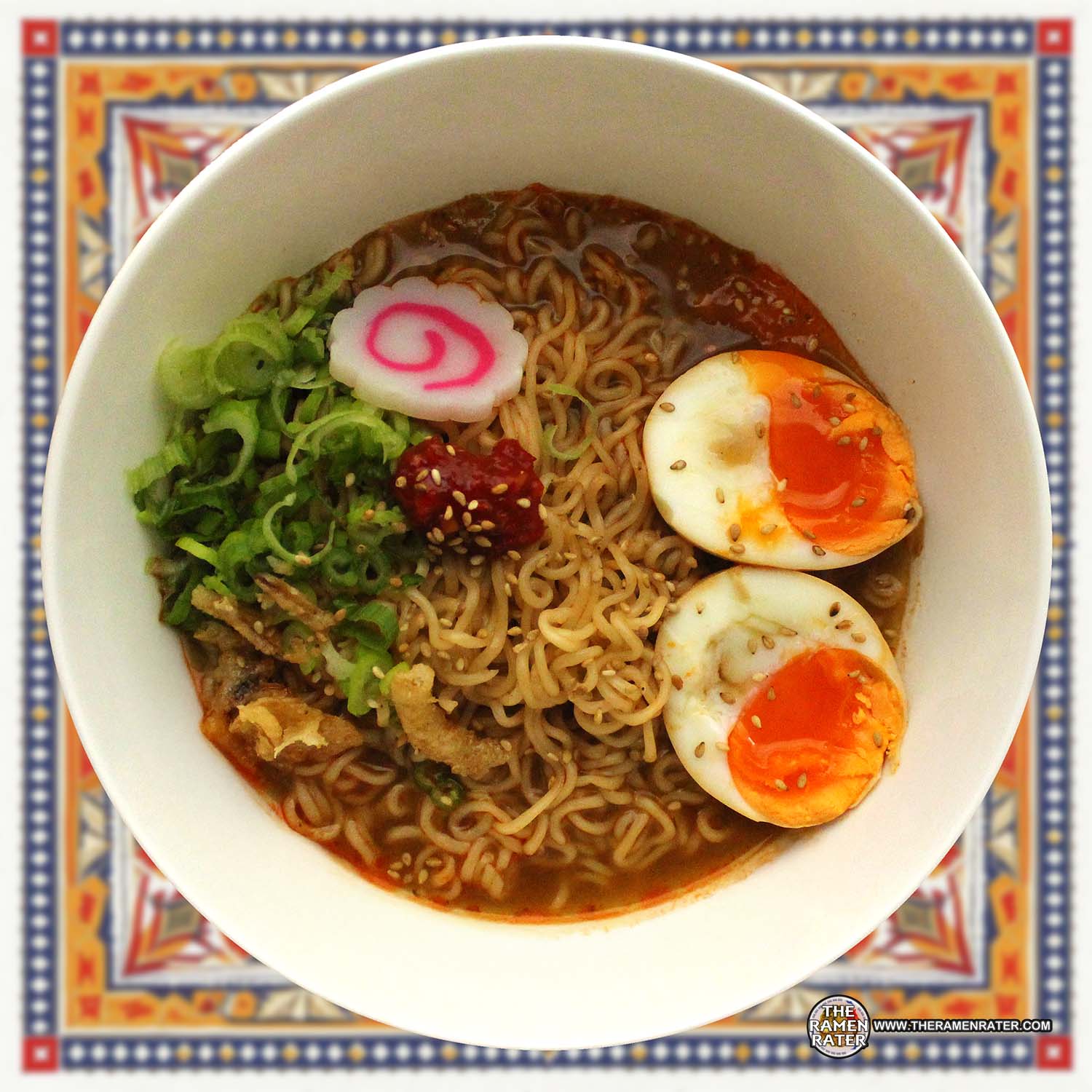 Finished (click to enlarge). Added narutomaki, scallion, egg, sesame seed, and LKK chili garlic sauce. Noodle’s great as expected. Broth flavor was a salty cross between a Chinese style braised beef and a kind of European duck flavor with a little bit of heat. Very savory – Liked thiis one. 4.5 out of 5.0 stars. EAN bar code 5997523335496.