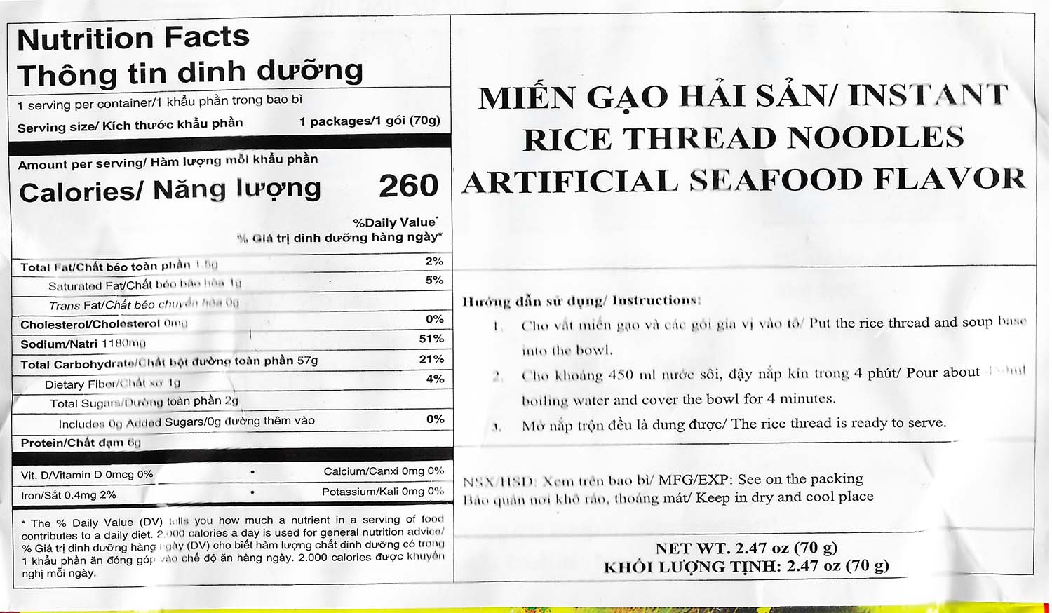 Binh Tay Instant Rice Thread Seafood Flavor – Vietnam