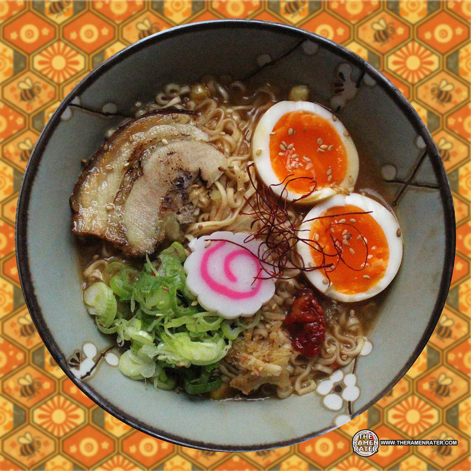 Finished (click to enlarge). Added fried onion, scallion, narutomaki, pepper thread, LKK chili garlic sauce, sesame seed, chashu, and egg. Noodle hydrated perfectly. The broth was a buttery miso which joined with the decent amount of corn was very nice. A little thickness there – perhaps corn starch but very nice. 3.75 out of 5.0 stars. EAN bar code 5997523313357.