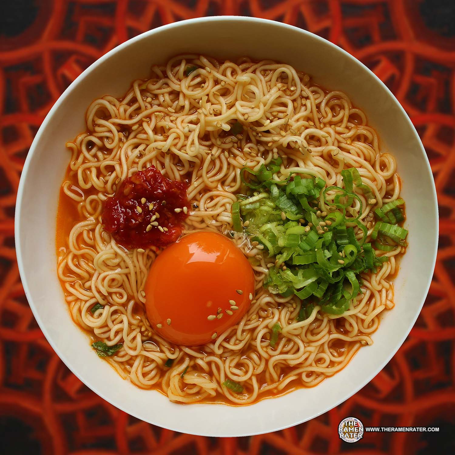 Finished (click to enlarge). Added scallion, sesame seed, egg, and LKK chili garlic sauce. Noodle came out in a way I would describe soft and fluffy, but not spongy. The broth was a salty and savory one with a spicy element which isn’t earth shattering. Vey accessible and nice. 3.5 out of 5.0 stars. EAN bar code 4016810470304.