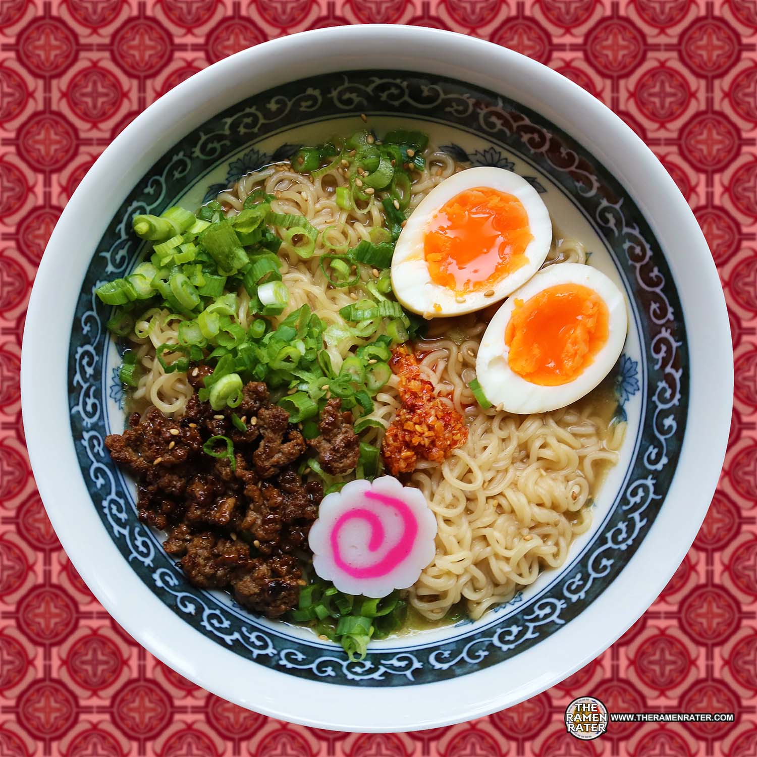 Finished (click to enlarge). Added narutomaki, chili crisp, ground beef, egg, sesame seed, and scallion. Noodle has the standard gauge and chew I’ve come to expect – very nice. The flavor is like a beef flavor you recognize as beef if you are told it is beef. Does this make sense to you? I think it’s more of a suggested beef flavor, but not exactly. It definitely compliments beef at least. Regardless, it tastes good. 4.0 out of 5.0 stars. EAN bar code 8712429350209.
