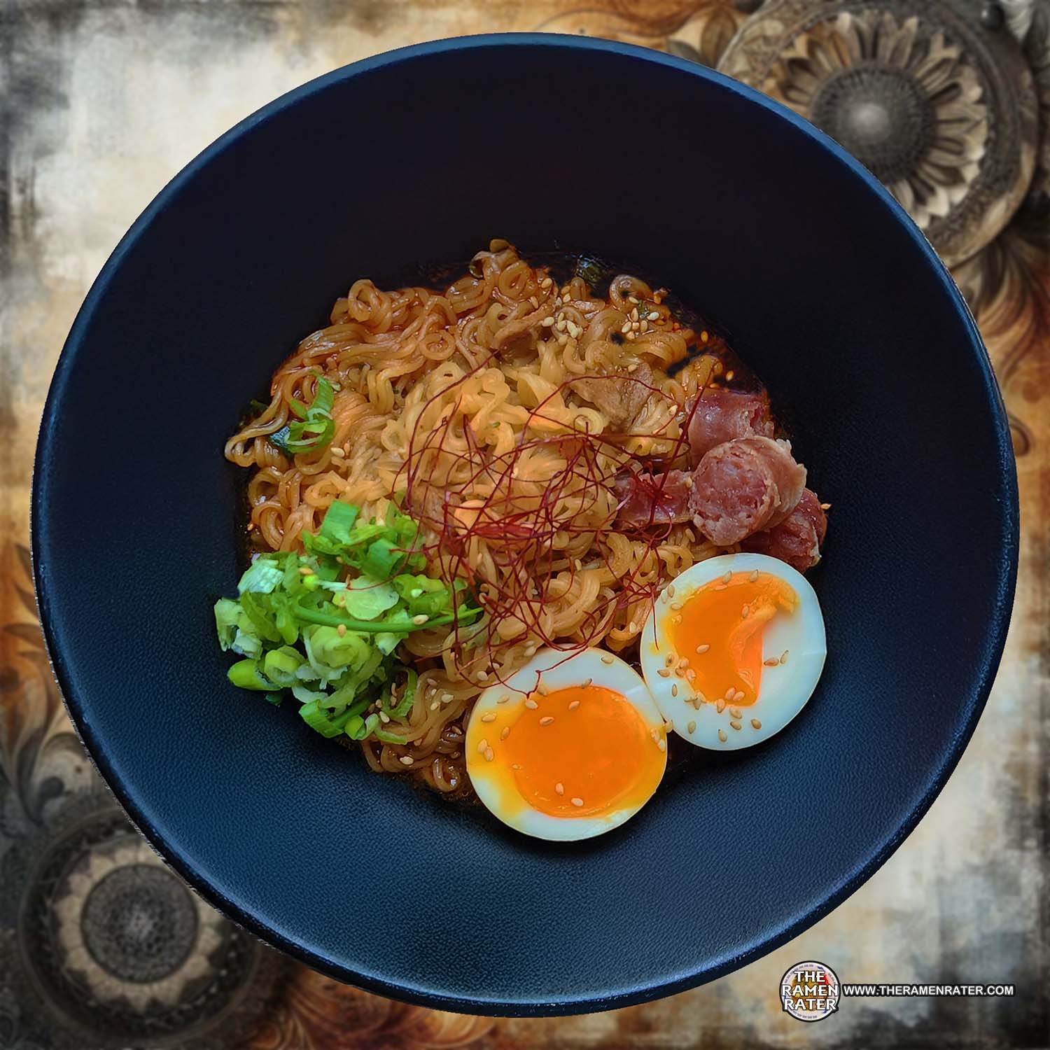Finished (click to enlarge). Added egg, pepper thread, scallion, sesame seed, and Chinese sausage. Wow – inpressive! Noodle is great – nice bit of chew and gauge. The broth is a very savory, nicely spicy beef which works so well. Little bits of veg in there are hydrated perfectly. As far as traditional Korean ramyun instants go, this is just spectacular. 5.0 out of 5.0 stars. UPC bar code 031146014255.