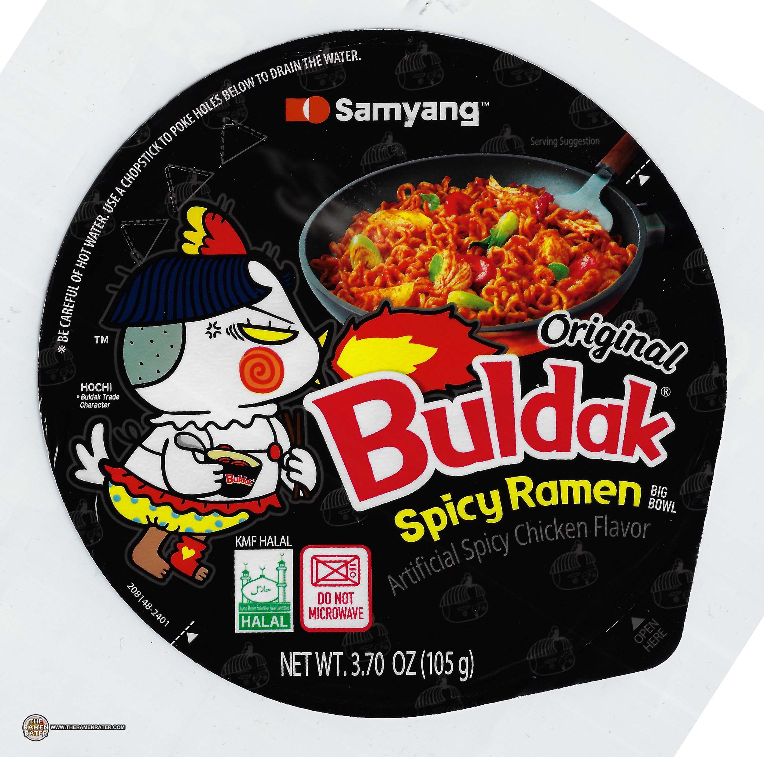Finished (click to enlarge). Nothing added. Noodle was great – texture and gauge worked very well. The weird thing was the flavor. I’ve been reviewing Buldak for a very long time; I tried it when it first hit the market, US versions and Korean versions. That being said, this is the least heat and most savory version I’ve tried. I ponder whether this is made to appease the chicken flavor idea in western markets; Buldak sauce is simply that – a sauce that goes on chicken. Calling that sauce chicken flavor makes no sense – like calling Sweet Baby Ray’s chicken flavor just because you might put it on chicken, or beef flavor et al. That being said, I have to admit, I like this iteration, but it is in no way ‘original’ but a new recipe compared to its roots. I’d say it’s easily half as spicy as the original. I wonder if the current Korean version is still regular strength. Quite nice and as always the garnish works. Probably the tastiest original Buldak thus far. 4.0 out of 5.0 stars. UPC bar code 8801073210363.