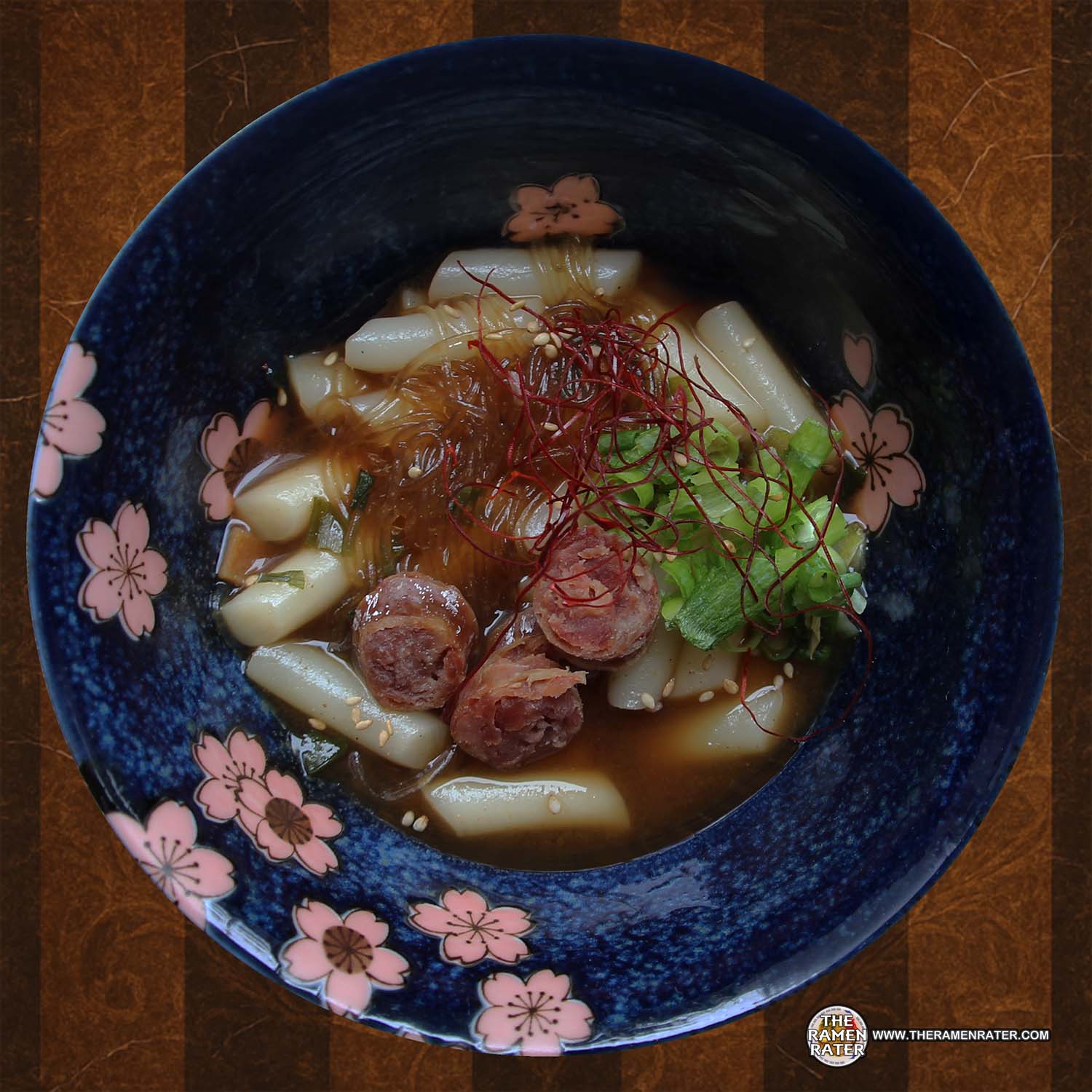 Finished (click to enlarge). Added Chinese sausage, pepper thread, sesame seed, and scallion. The mung bean thread and tteokbokki combo is really interesting. More used to a wheat noodle for something like this, yet it worked well enough. The sauce is very sweet and has a savoriness. Does remind me of bulgogi. 3.75 out of 5.0 stars. EAN bar code 8809950200292.