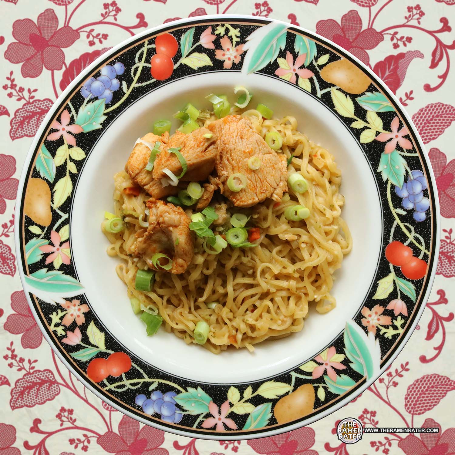 Finished (click to enlarge). Added sautéed chicken and scallion. Noodle came out quite well. What was a happy respite was the flavor – it was very nicely done! Strong parmesan cheese notes – and a granular kind of texture from parmesan cheese. Little veg bits were inconsequential, but that’s aside – it was good! I would devour one of these happily. Garlic, yeah maybe a little, but mostly parmesan. A little pepperiness as well that was interesting. Thrilled that the third time was a charm. 3.75 out of 5.0 stars. UPC bar code 070662410035.