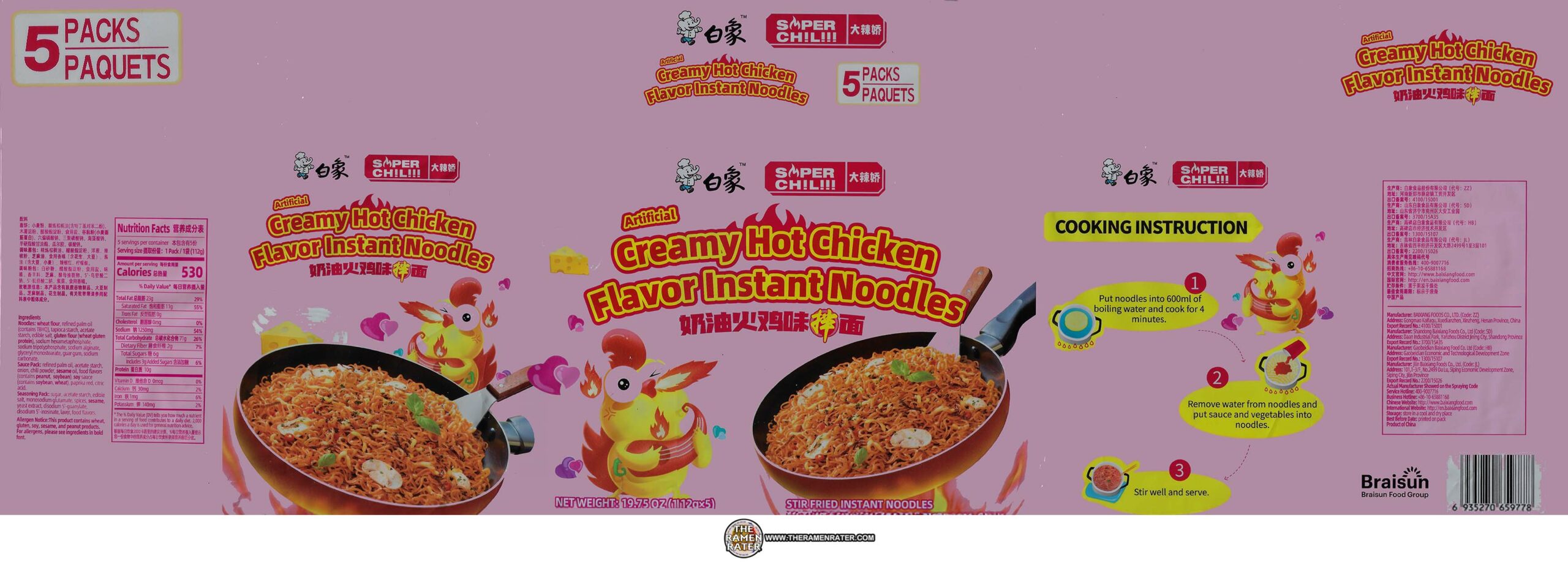 Finished (click to enlarge). Here we have the standard Baixiang instant noodle which is usually on the fluffy and soft side. The flavor however is very rough. I expected a lot of heat, some more than heat for flavor, but I was gob-struck. For something with an angry chicken on the package, I got such a funky flavor. I think the creamy element betrayed all comers here. It tasted like bizarre marshmallows; kind of hot cocoa element. It was so opposite from what I’d expected or even remotely hoped for. This was foul. Strange, as I usually love varieties from this company. Not this one. 0.0 out of 5.0 stars. – EAN bar code 6935270659778.