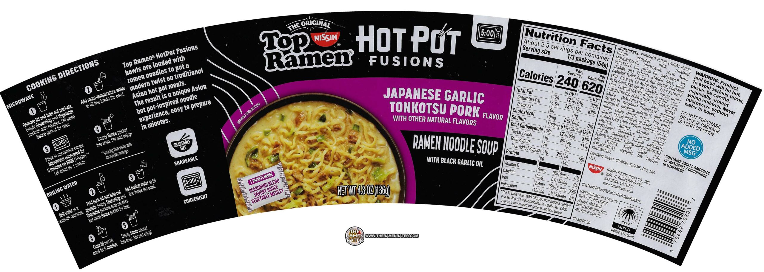 Nissin Top Ramen Hot Pot Fusions Japanese Garlic Tonkotsu Pork Flavor Ramen Noodle Soup – United States