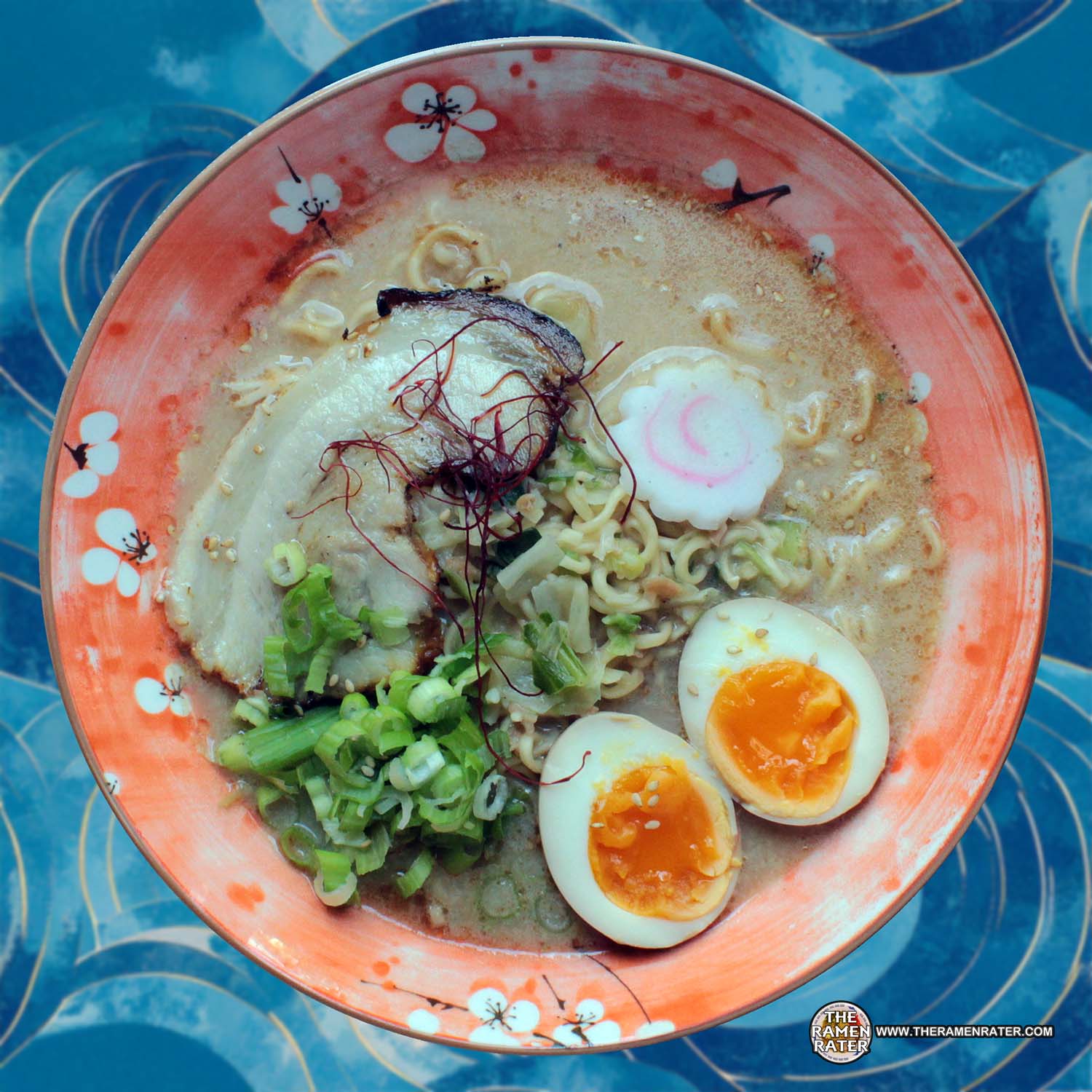 Finished (click to enlarge). Added egg, sesame seed, chashu, scallion, narutomaki, and pepper thread. Noodle came out perfect – gauge a touch thicker than your standard instant and a bit chewier. The broth is just awesome – oily, garlic notes, nice pork flavor creamy broth. Included veg was on point as well. Truly impressed – excellent job. 5.0 out of 5.0 stars. UPC bar code 070662302033.