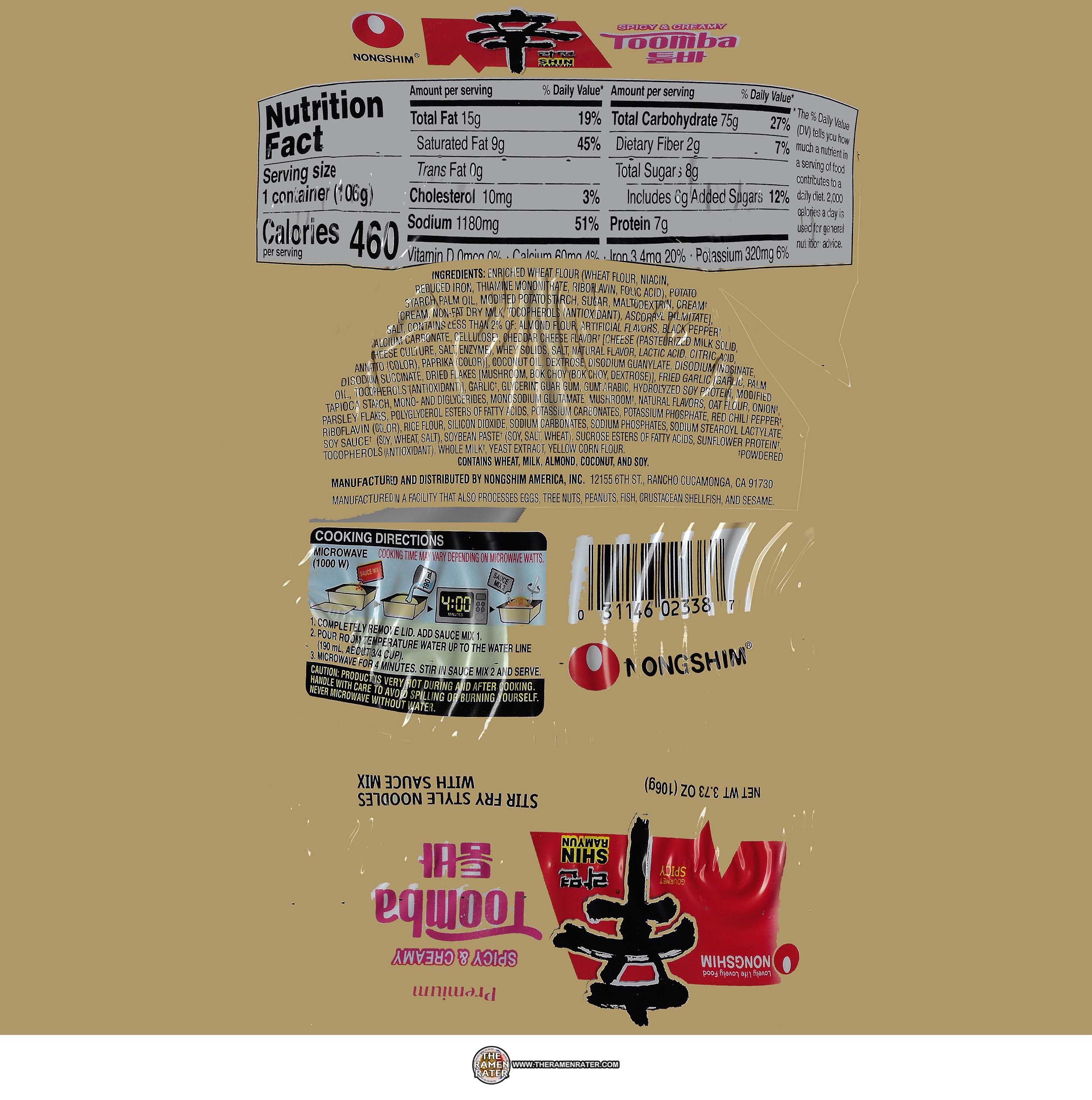 Finished (click to enlarge). Added scallion, sesame seed, crushed red pepper. Noodle came out well – no problems there. The flavor though… I don’t want to be the turd in the punchbowl as I know a lot of people like this one, but yeah, no. When I made it with too much water and it was soupy, it was subtle, savory, and balanced. This seemed more like one that was intended to be soupy, but I didn’t put in enough water. Flavors are so strong on salt. Just not my thing. 2.0 out of 5.0 stars. UPC bar code 031146023387.