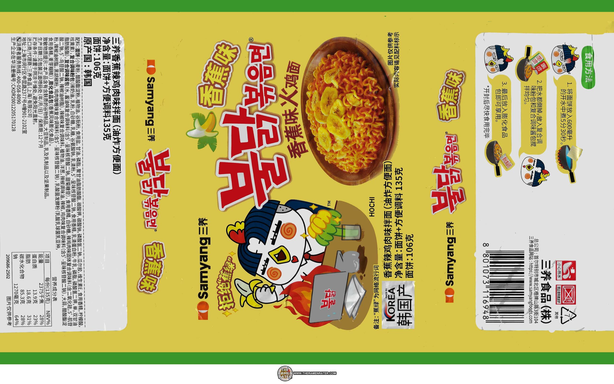 A big thanks to The Fat Hipster for sending this my way. Yep – banana. That’s bananas. Well, it works for me – that sounds bizarre and IU like bizarre in a sea of just plain chicken varieties on the market. I expect cries of ‘dude I need to try this – where can I get it?’ Book a flight to China or spend a lot of money is my guess. This one seems to be made in South Korea, however it’s China-exclusive. There will of course be a cooking vid and a mukbang below. Let us delve into bananamonium.