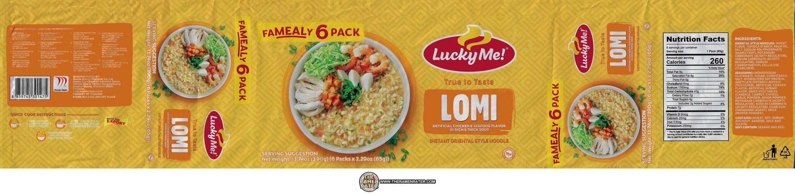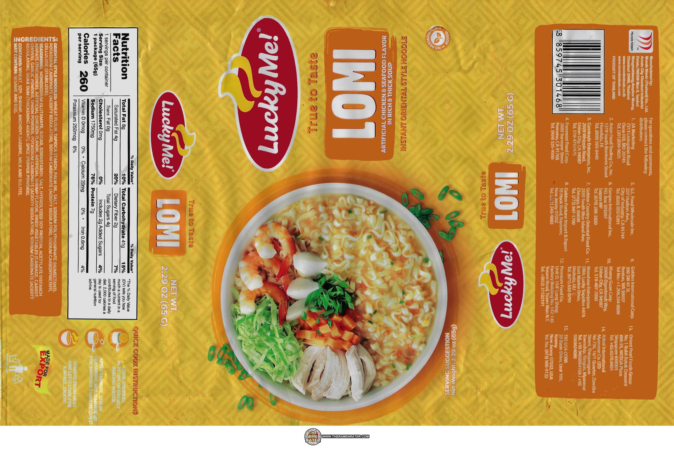 Detail of the packaging (click to enlarge). Contains fish and shrimp. To prepare, boil noodle in 2 cups water. After 1 minute, add in sachets and stir. Cook an additional 3 minutes. Finally, stir and enjoy!