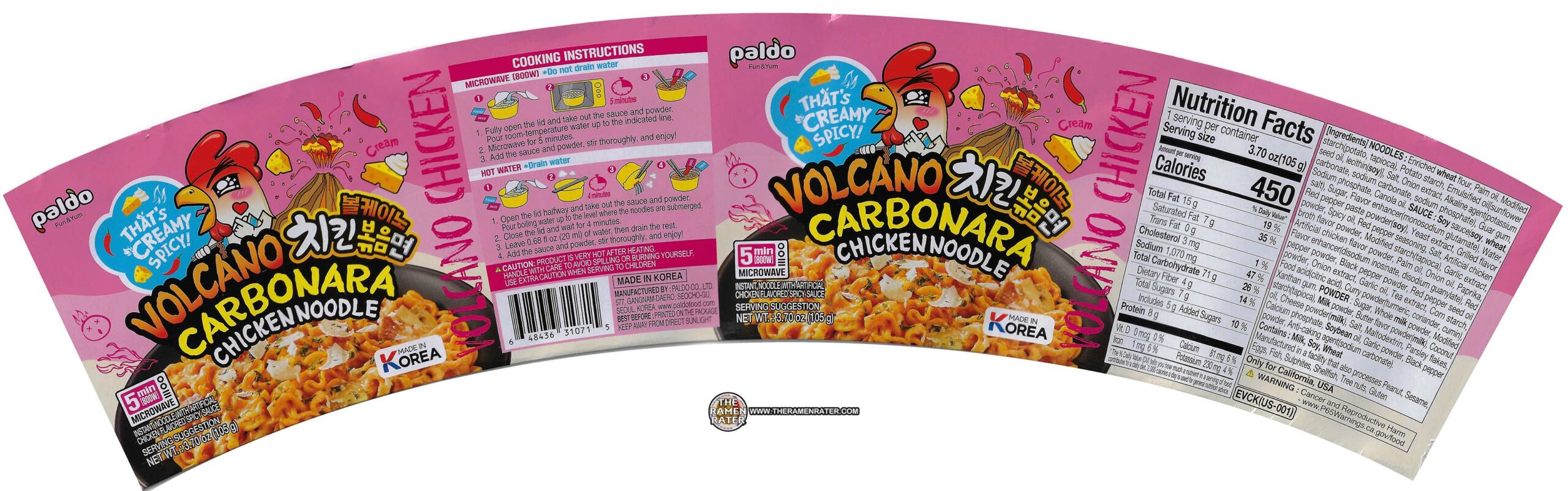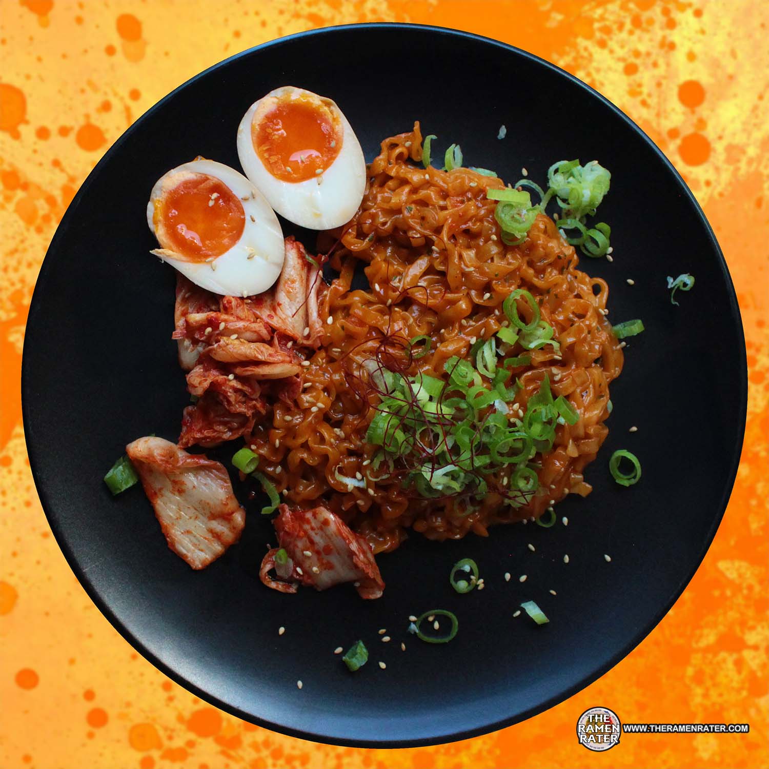 Finished (click to enlarge). Added kimchi, sesame seed, pepper thread, scallion, and egg. Noodle came out great – don’t think I’ve seen any done like this in the microwave, but it worked incredibly well. The sauce was sweet with curry hints and a bit of creaminess. It was really nice – nicer than the pack version. 4.25 out of 5.0 stars. EAN bar code 648436310715.