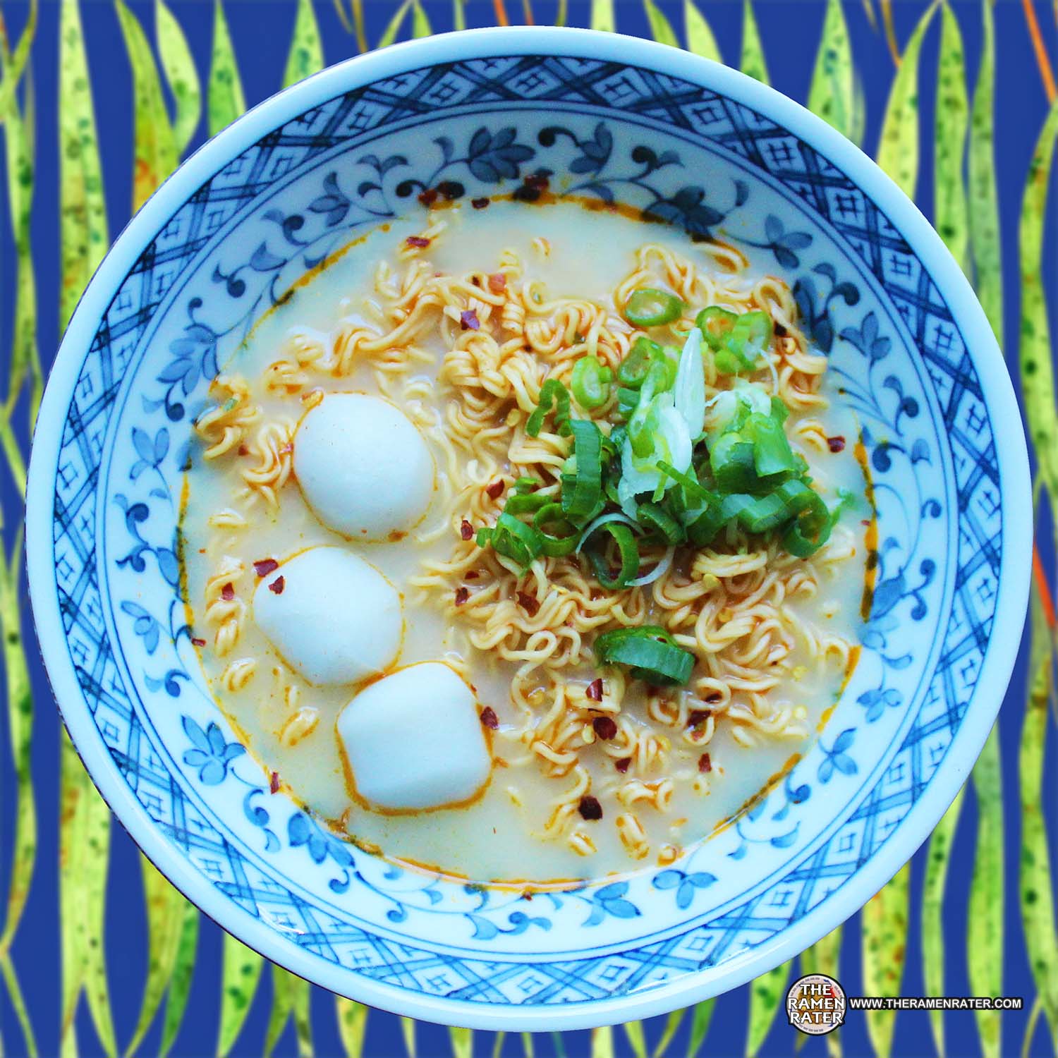 Finished (click to enlarge). Added fishball, scallion, and crushed red pepper. Noodle is really bouncy and chewy – very impressed. The broth is a spicy and tom yum like melange with a creaminess I liked. 4.0 out of 5.0 stars.
