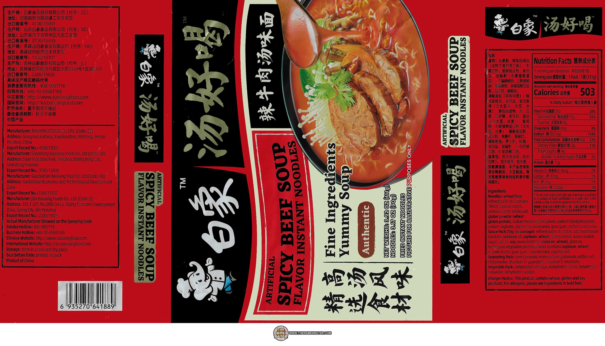 Baixiang Artificial Spicy Beef Soup Flavor Instant Noodles – China