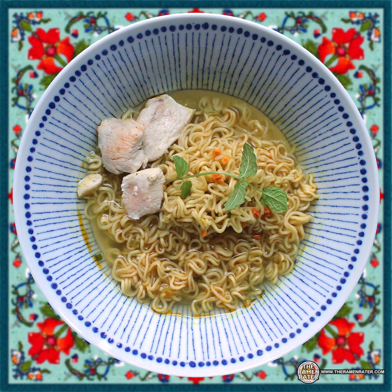 Finished (click to enlarge). Added chicken and mint leaf. Noodle was okay, but the broth was very light. It definitely had a curry taste that seemed more towards European stylings. Not a huge fan. 2.0 out of 5.0 stars. UPC bar code 850047032195.