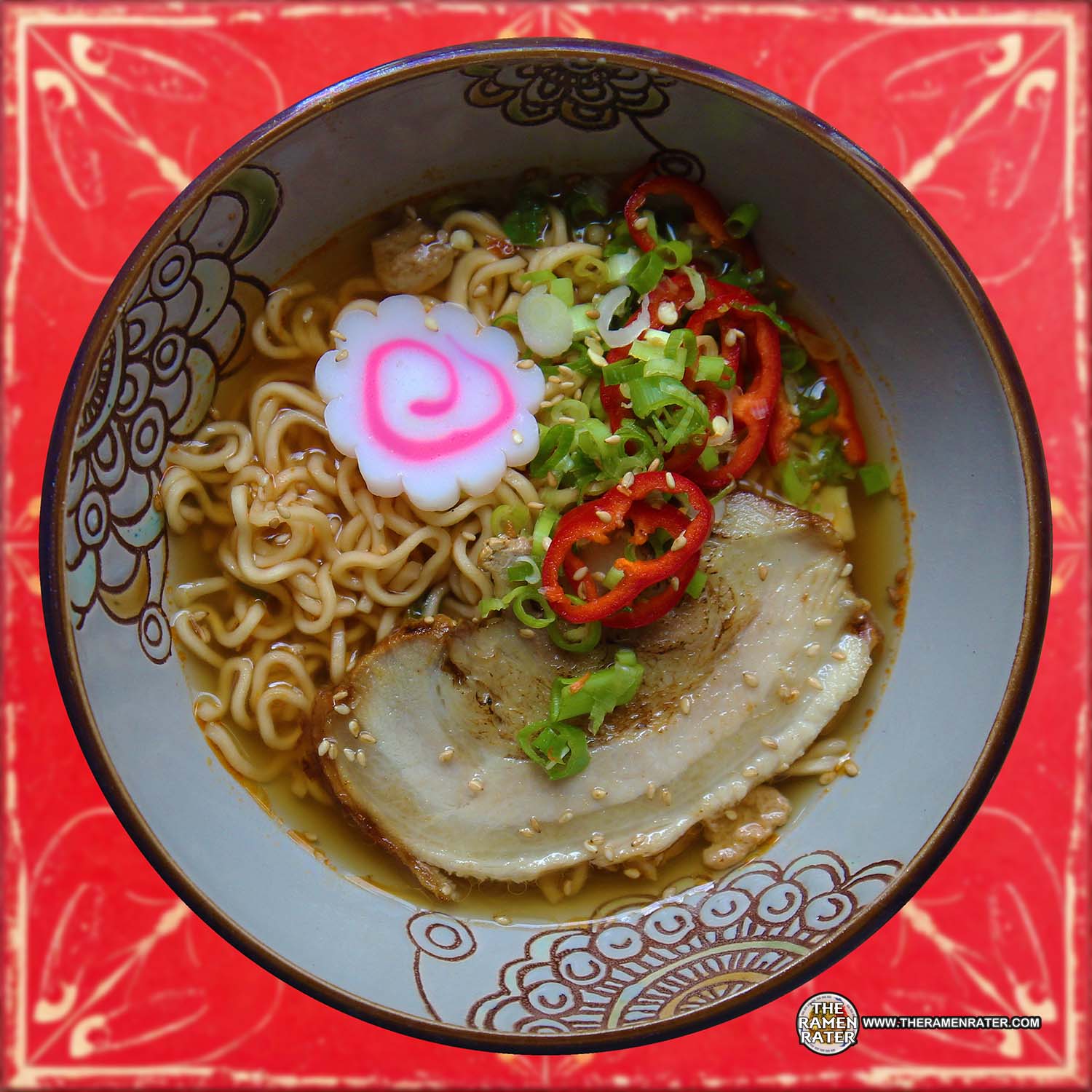 Finished (click to enlarge). Added fishcake, chashu, scallion, sesame seed, and Fresno pepper. Noodle hydrated nicely and a very nice gaug – thicker than normal. The broth is really nice – a combo of spicy and lemony which was savory as well. I knew this would be different – and in a good way. 4.25 out of 5.0 stars. EAN bar code 5901882019126.