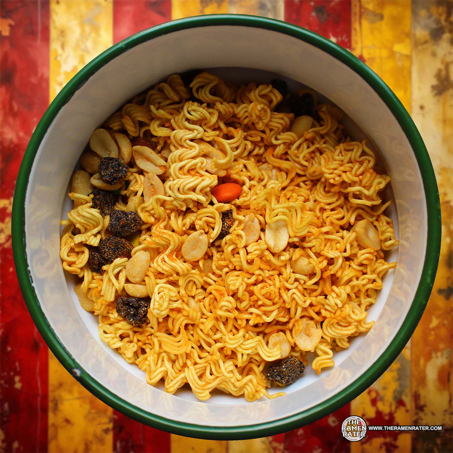 Finished (click to enlarge). Added a small bag of trail mix. Noodle has a ‘not gonna crack your teeth’ crunch to it which I enjoyed. Flavor is sweet with a little spiciness (I had my wife try it though and she got a little irritated at the heat level). It’s good – definitely for a snack a 4.0 out of 5.0 stars. UPC bar code 645175560098.