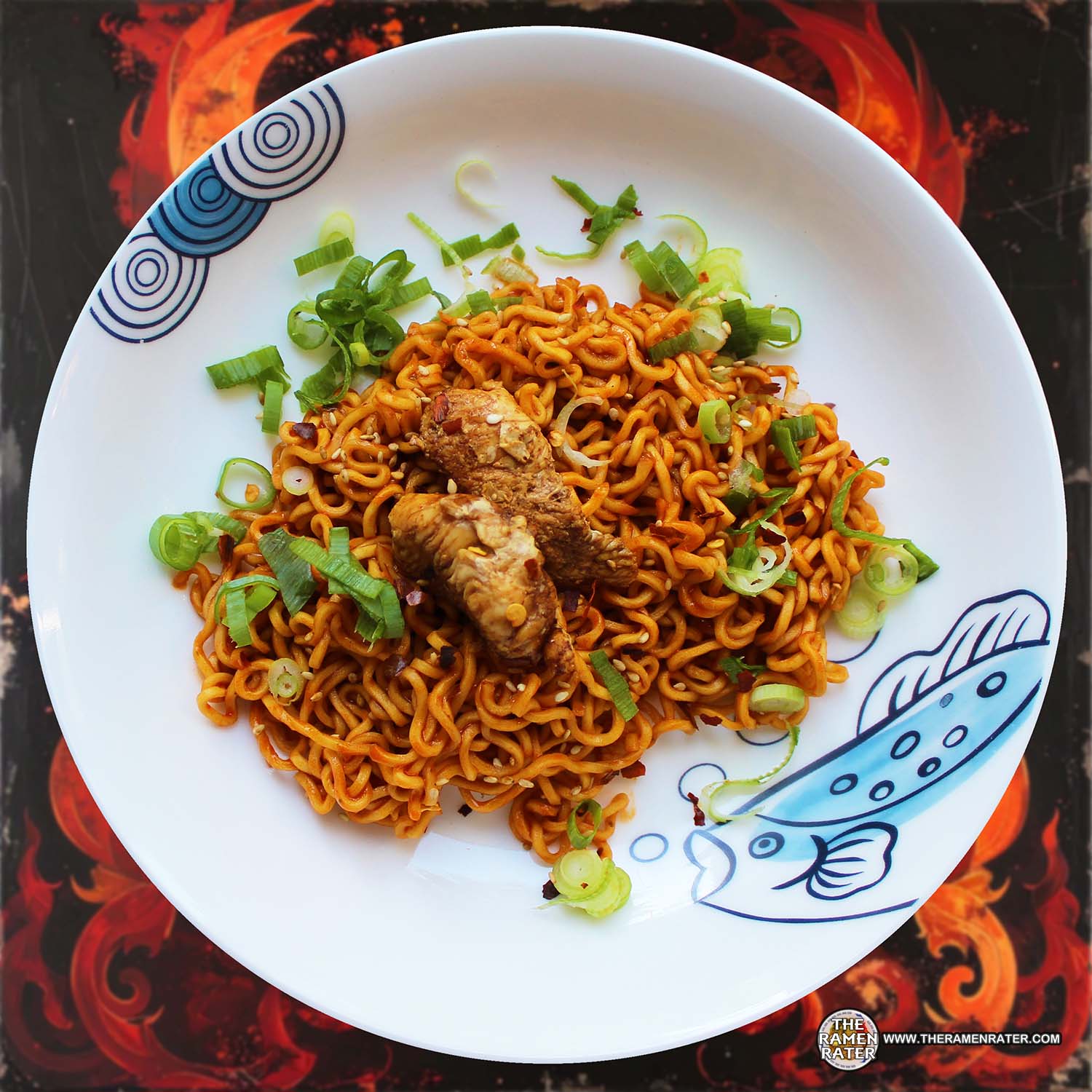 Finished (click to enlarge). Added chicken, sesame seed, scallion, and crushed red pepper. No complaints about the noodle – nice gauge and chew for a steeped variety. The flavor? The noodles are indeed slippery with the sauce which I liked – not too dry. But it tastes like a combination of sugar, coffee, and I don’t know what. It just is all out strange and very funky. 1.0 out of 5.0 stars. EAN bar code 8935311103145.