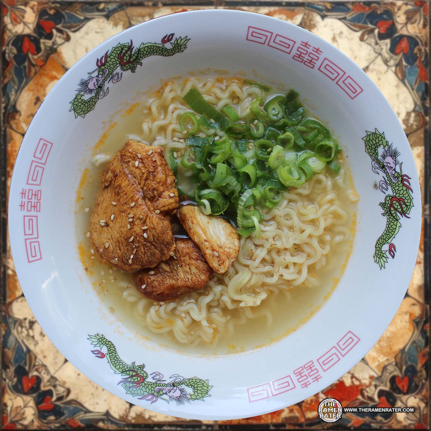 Finished (click to enlarge). Added chicken, scallion, and sesame seed. Really got to hand it to these folks – an excellent fried noodle. Thick, nicely chewy – a favorite for sure. The broth is a hint of spicy standard chicken flavor. Really surprised and happy to have found this. 4.75 out of 5.0 stars. EAN bar code 10810001319370
