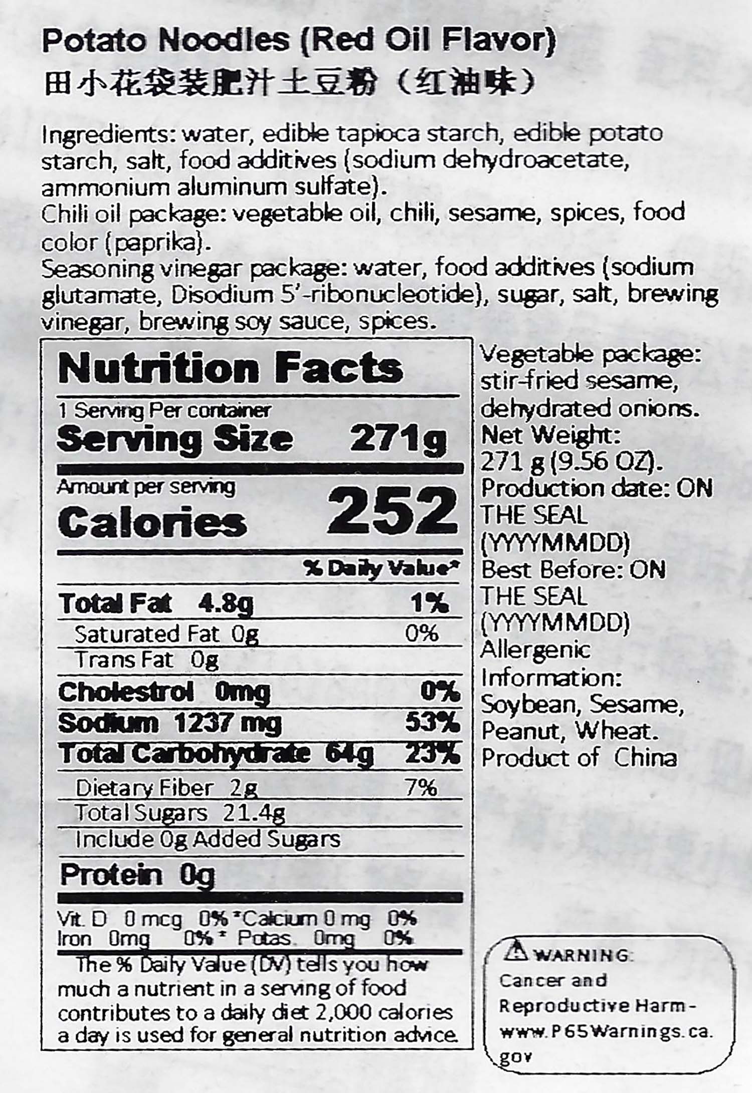 Tian Xiao Hua Spicy Red Oil Thin Potato Noodles – China