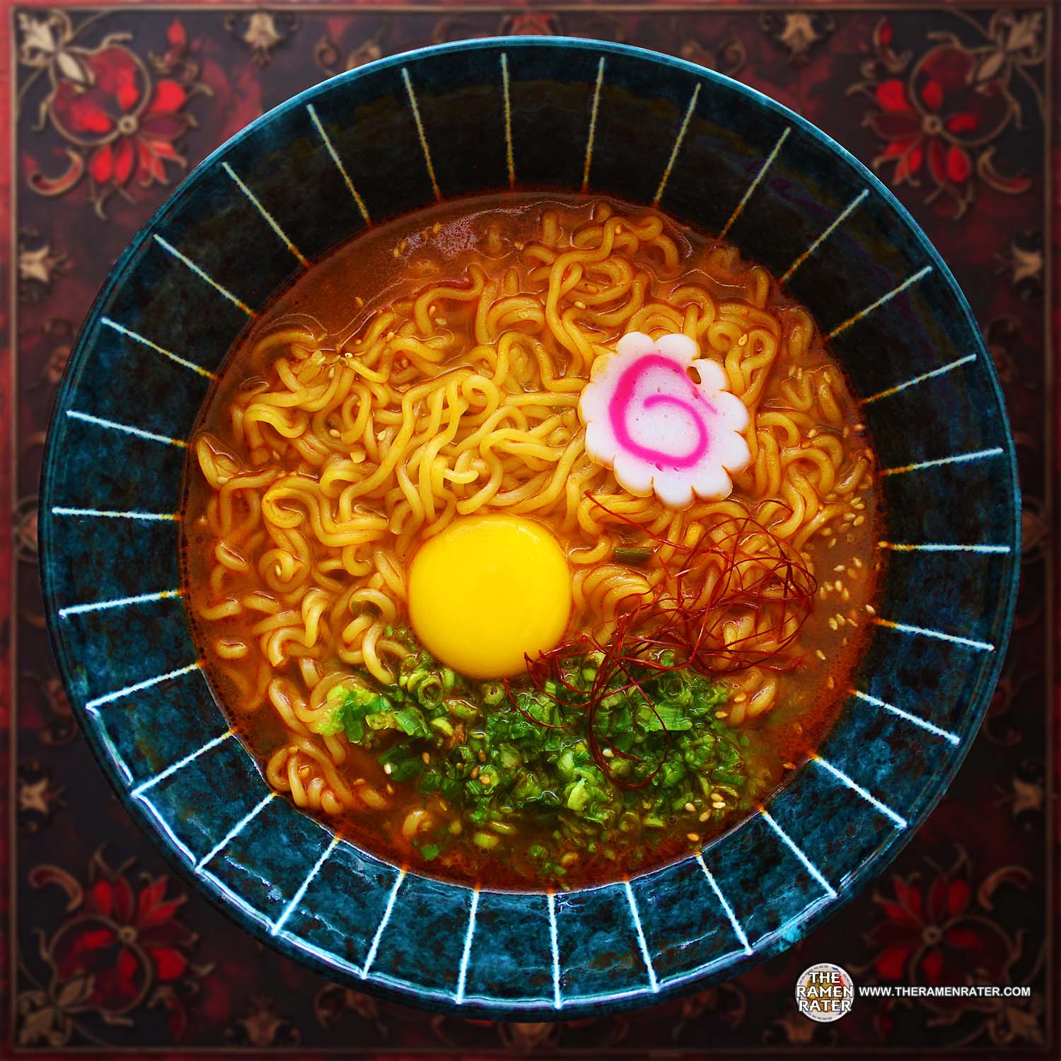 Finished (click to enlarge). Added egg, pepper thread, sesame seed, fish cake, and scallion. Noodle is great – nice chew to this one. The broth is a medium spicy one – all in all this is what I would call ramyun – no bitter aftertaste here – and just tasty stuff. 4.0 out of 5.0 stars. EAN bar code 8809778496358.