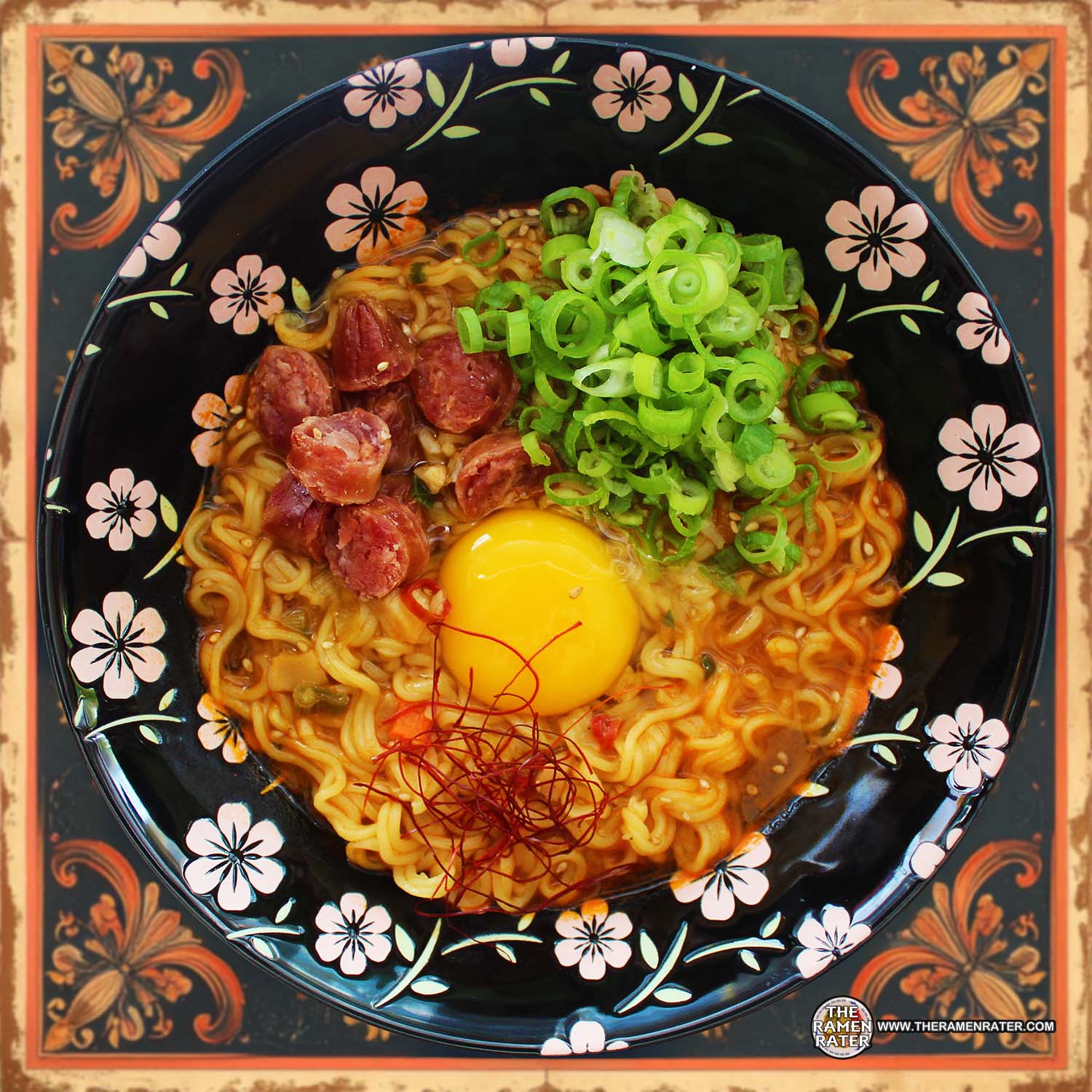 Finished (click to enlarge). Added egg, pepper thread, scallion, and Chinese sausage. Noodle came out nicely, soft and good. The broth was a Hong Kong approach to a Korean ramyun broth. Spicy but also very savory. Neat one! 4.75 out of 5.0 stars. EAN bar code 4897878830138.